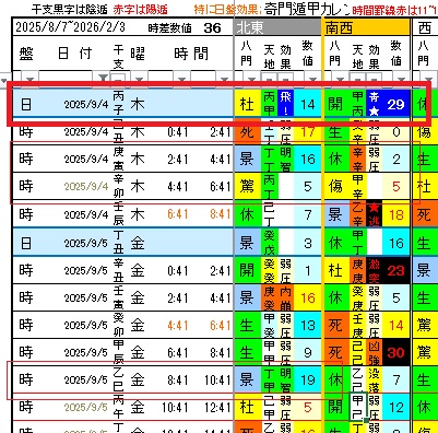 奇門遁甲を使ってみた 9月4日南西の日盤