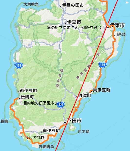 下田からは南西方位に入ったが、おれは伊東からのルートも南西方位で行動していると勘違いしていた。