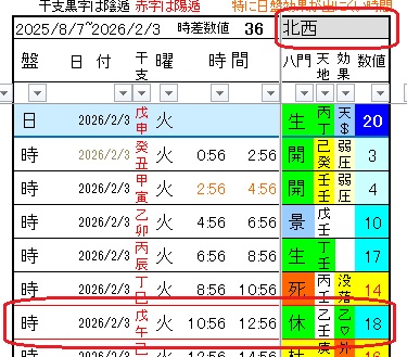 2月3日の北西は日盤は天$の大吉で日盤は文句なしによい。
