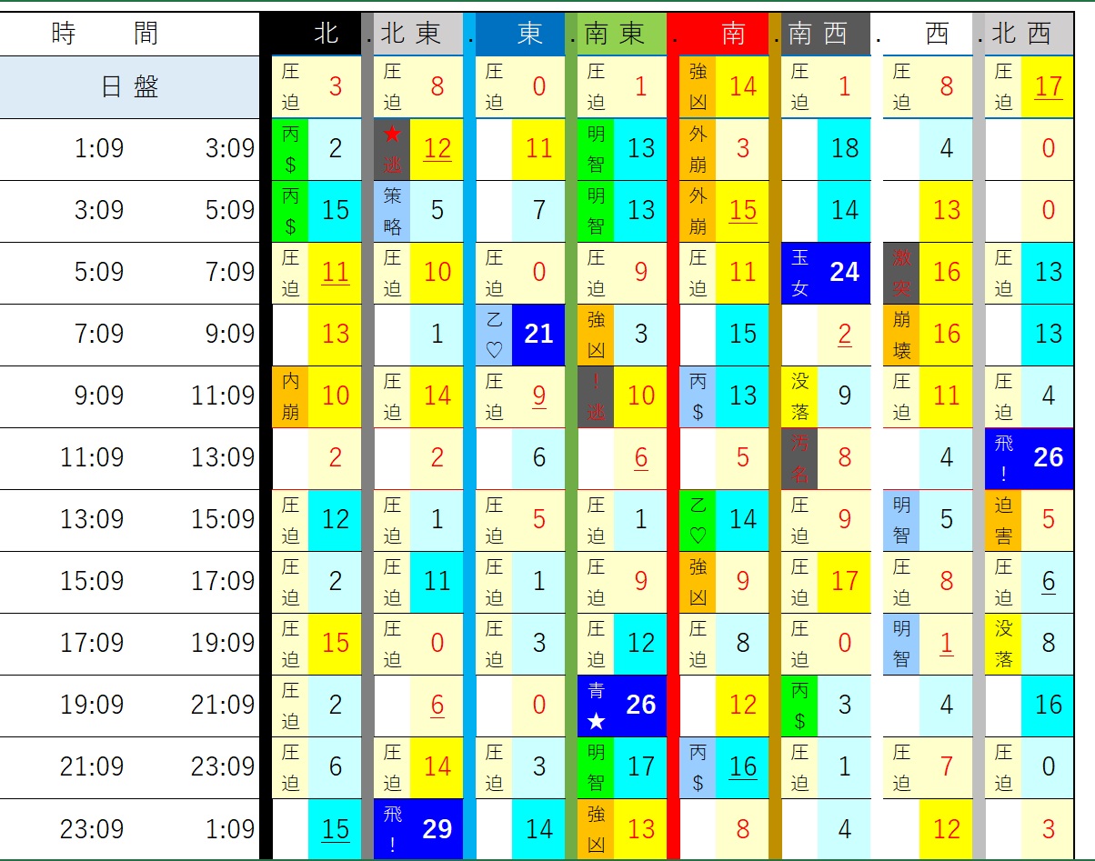 今日の方位+時間別