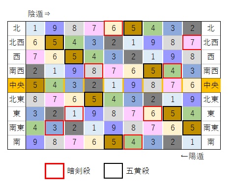 ■は暗剣殺 ■は五黄殺 ← ← 陽遁
