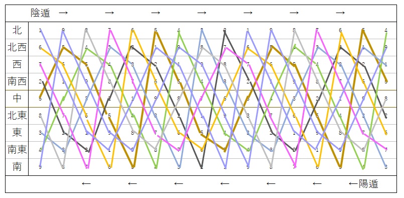 中央が五黄殺から開始(陰遁) 陽遁は六白から開始
