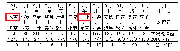 時盤についても約5日と約6時間の修正を私の奇門遁甲では芒種(夏至の前)が大雪(冬至の前)で行うようにしている。