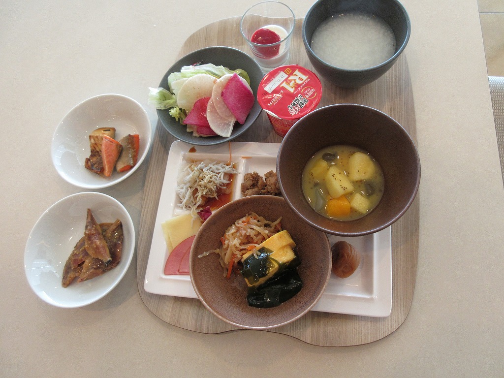 バイキング方式なので何度も取りに行き 中でも一番はおかゆに梅干し、さすが和歌山県、梅干しはうまい カツオのフレークも入れてシラウオもぶっこんで3杯は食べた。