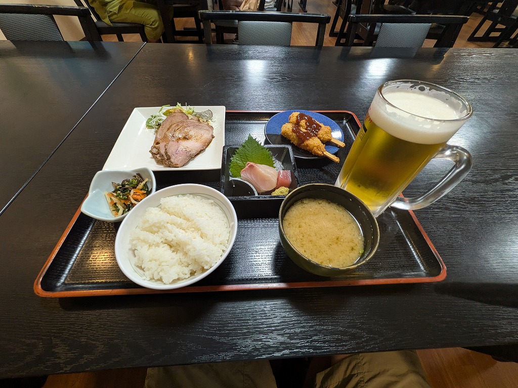 1泊朝食夕食付きで6千円代なので贅沢は言えないが・・ビールは後払いになった。