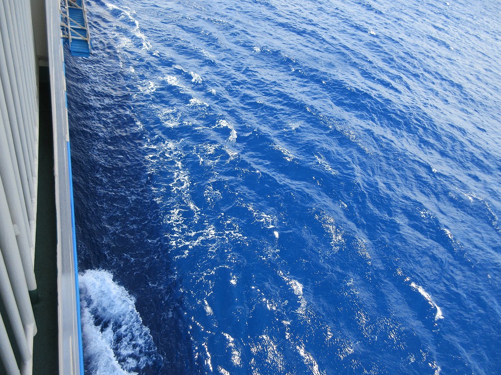 外洋を渡るので大型の船だが、湾を離れると風も強く横揺れがしている。