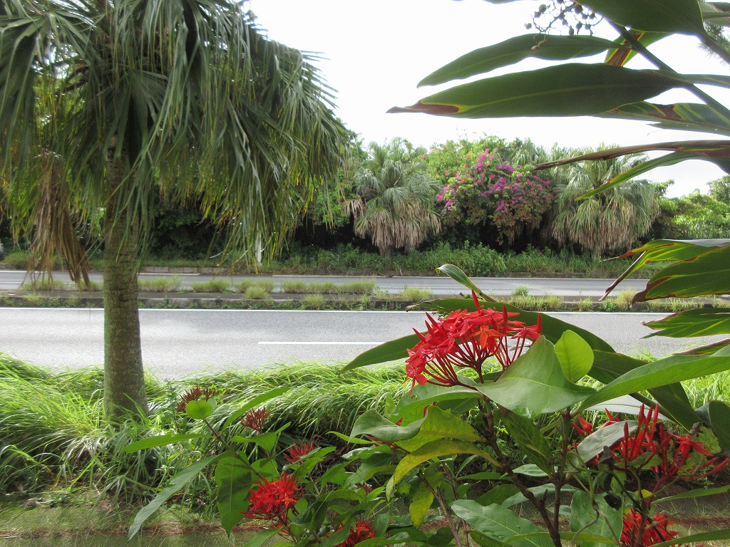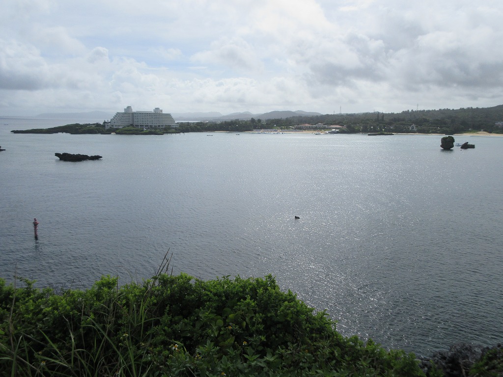 沖縄での台風の1日をどう過ごすかと考えたいたが、午前中は雨が1mm以内というネット情報を信じて恩納村の万座毛海岸を目指しカブ号を走らせる。