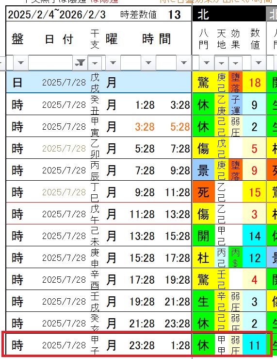 この時間帯は日盤同士が干渉する時間帯で残念ながら九問と甲甲(天地)の効果が出るかは難しい。