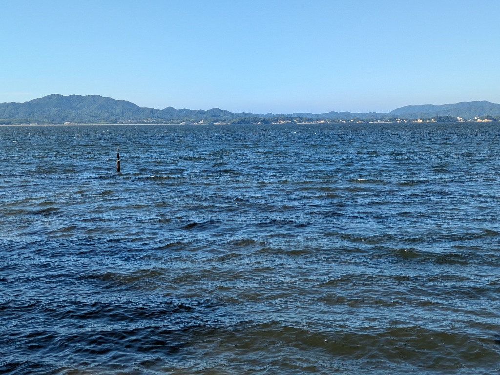 宍道湖 杭の上に鵜が止っている