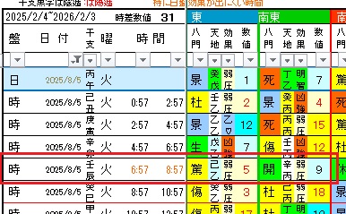 今日の奇門遁甲時盤