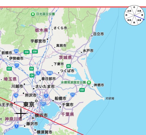今日の方位 南東だが東との境界線に近い