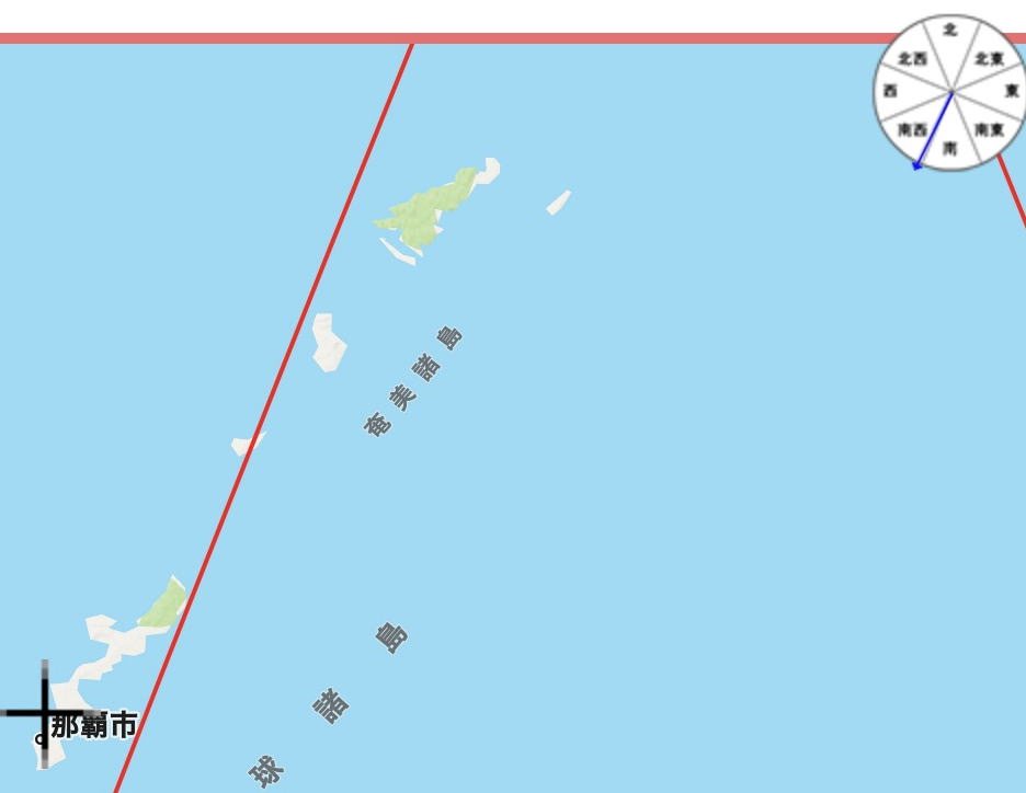 鹿児島から那覇の方位が南と南西の線上となり使えないが南西に近い日盤