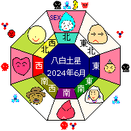 八白土星は坎宮(かんきゅう)北に入ります。象意は水で五行も水で人物は中男 長男と末子の間なので人間関係が鍛えれれるため人との融和がうまく目立つ表よりは隠れる裏が気性に合っている。冬で夜の時なので休眠の時となりミスを起こしやすい。知性と感性は鋭く研究・開発などの成果やシックな感覚での評価は期待できます。特に男女間の秘め事は独身者には結婚の近道であり妻帯者はアバンチュールになりやすく注意が必要です。子運あり。