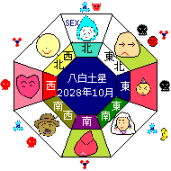年方位盤 2028年2月4日より2029年2月2日まで戊申八白年