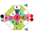 七赤金星は中央の宮に入ります。八宮の中央は王宮にも牢屋にもあなたの態度や行動自体で変わる。どちらかというと八宮による監視された八方ふさがりの牢人のような状態になりやすい。七赤生まれは明るくほがらかなタイプが多いが浮かれて周りの見る目が一人でもダメだと思われたら周囲は同調し八方ふさがりの身動きがとれない大凶状態になる。周りの意見をよく聞いて寄り添って感謝されることを繰り返すと周りが持ち上げ大吉の状態になる。今年は自分勝手な行動はしてはいけない。口舌に注意し慎重な態度と行動が求められる年になる。