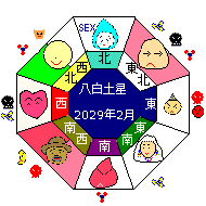 年方位盤 2029年2月3日より2030年2月3日まで己酉七赤年